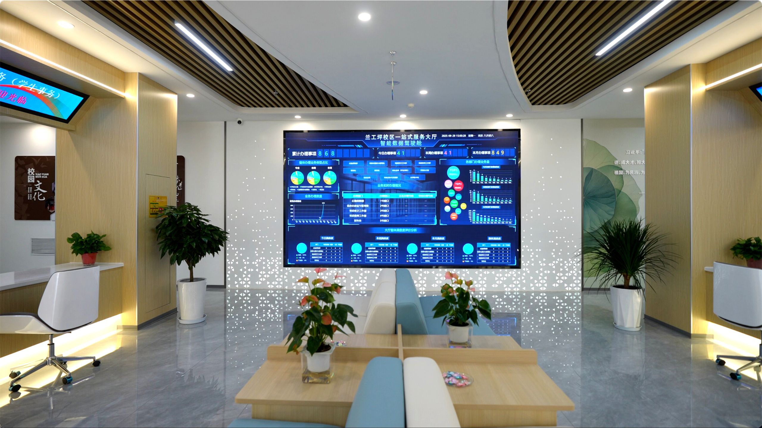 抓效能促发展,在“好”字上见实效,持续释放数智赋能价值。数智校园建设的根本目标在于赋能学校高质量发展,提升治理效能与师生获得感。随着数智校园运行中心、数据中心建成并投入使用,以及“一站式”服务大厅正式运行,“抓效能促发展”成效逐步显现:“校长驾驶舱”初步建成,为学校宏观决策提供可视化数据支撑;“处长驾驶舱”加快开发,将助力实现部门精准管理与科学决策;一站式服务大厅整合多部门业务流程,简化办事环节,师生业务办理时间显著缩短,满意度持续提升。线上服务渠道不断拓展,“数据多跑路、师生少跑腿”正成为常态。强大的数据中台、算力基础设施与网络保障体系,持续为教育教学改革、科研协同创新、学科专业建设注入新动能,为学校高质量发展筑牢数字根基。